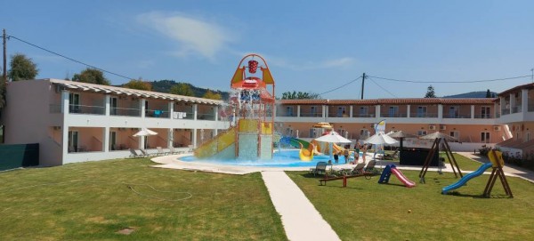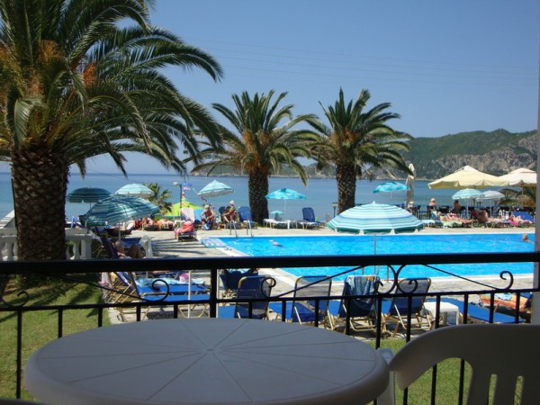 Hotel Alkyon se nachází v letovisku Agios Georgios na severozápadním pobřeží ostrova Korfu. Pláž tady patří k nejkrásnějším na celém ostrově a každoročně je oceňována modrou vlajkou. Viz: http://www.corfuanthistravel.gr/cs/letoviska/23-agios-georgios.html Hotel se skládá ze čtyř jednopatrových budov. Pokoje hlavní budovy mají přímý výhled na moře. Ostatní budovy jsou s výhledem na trávník a zbývající budovy hotelu. Většina pokojů je prostorná, pohodlně se vejde jedna přistýlka. V některých pokojích je umístěna palanda pro čtyřčlennou rodinu s menšími dětmi. Pokoje jsou účelně vybavené, součástí vybavení je lednice, klimatizace a satelitní televize. Všechny pokoje mají prostorné balkony. Některé pokoje byly nedávno rekonstruované. Velký bazén s barem a lehátky a menší bazén pro děti se nachází mezi hotelem a pláží. Před hotelem je také venkovní restaurace, odkud je výhled na moře. Mezi hotelem, restaurací a bazénem je prostorné parkoviště. Celý komplex je oplocený. V hlavní budově hotelu je recepce, bar, velká obrazovka satelitní TV, pohovky a jídelna. V celém prostoru hotelu je zdarma WiFi. Na recepci jsou k dispozici zdarma bezpečnostní schránky. V letovisku Agios Georgios je mnoho restaurací, několik obchodů a barů, bowling se dvěma drahami, diskotéka, půjčovna lodí a šlapadel, půjčovna windsurfů a škola windsurfingu.
