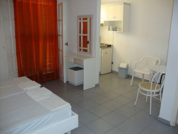 Studia jsou prostorná, vybavená bílým nábytkem. Ve studiu je skříň, dva noční stolky s lampičkami, dvě lůžka, kuchyň se stolem a židlemi, klimatizace, lednice, varná konvice. Před studiem je balkon se stolkem a dvěma židlemi.