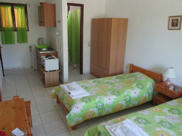 Jedna větší patrová a jedna přízemní budova se nacházejí na klidném místě Sidari, velmi blízko písečné pláže a nepříliš daleko od centra letoviska. Budovy jsou oplocené, s možností parkování uvnitř. Okolo jsou stromy a kvetoucí keře (oleandry). V blízkosti jsou restaurace, bazény a obchody. Prostorná studia a apartmán (typu open) jsou standardně vybavené, všechny mají satelitní TV, balkon nebo verandu a klimatizaci (za doplatek), v kuchyních je kromě standardního vybavení rychlovarná konvice Do všech studií je možno umístit jednu přistýlku. Ve dvou studiích je umístěno řádné 3. lůžko. V celém objektu je k dispozici wifi zdarma.
