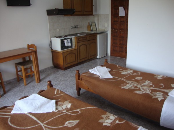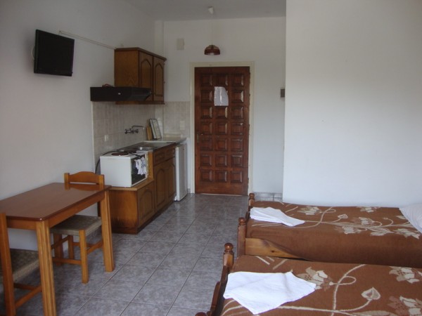 Jednopatrový dům v klidné části Acharavi a velmi blízko u pláže. Dům je oplocený s možností parkování 2 aut. Na dvorku je zahradní nábytek a gril. V blízkosti jsou restaurace a obchůdky. Centrum Acharavi je ve vzdálenosti zhruba 700 m. Studia jsou velmi prostorná, standardně vybavená s televizí, klimatizací (za doplatek) a wi-fi zdarma. V kuchyňce je rychlovarná konvice a nádobí pro 3 osoby. Každé studio má balkon, z něhož je boční výhled na moře. Majitel se o objekt pečlivě stará.